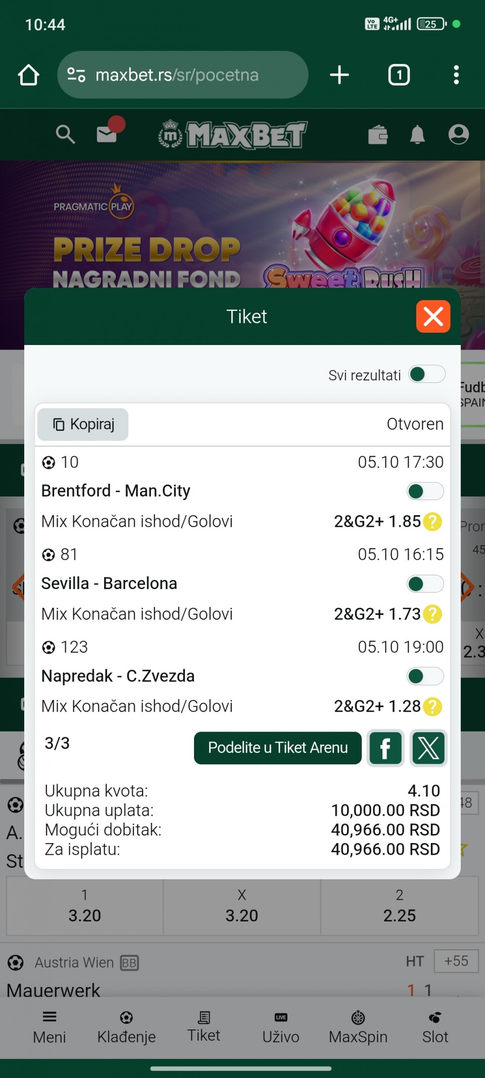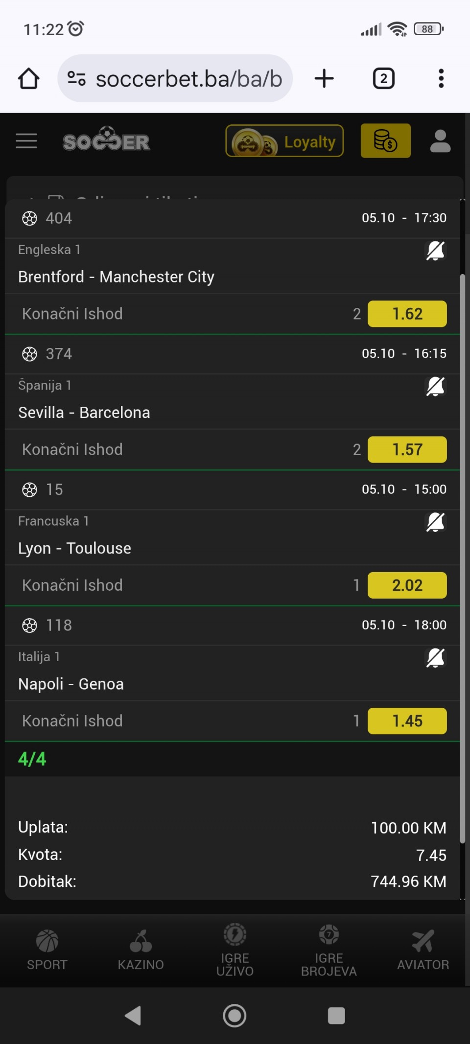 Klagenfurt - Polten 2 ja sam uhvatio 5.30 kvotu ali naglo je pala na 4.70