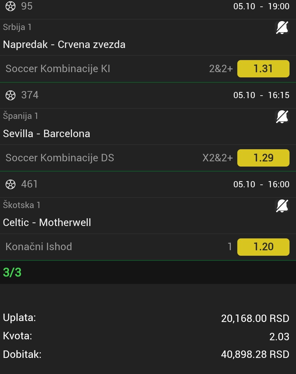 Juce 8/9 Ajax me skenjao za 80k. Danas zato jedan ludacki na 1000 din dobitak 100k evra. Kvota 6800, prosli vikend pogodjen 21 par od 25 za maksimalu od 50 mil dinara, ajde sad da probamo 20/20. Jeste tesko, ali verujemoo! Srecnooo