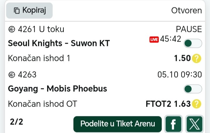 Da vidimo da li ce opet Koreja da upropasti zadnju. Ne gajim nadu jer bi bilo puno da pogodim opet. Zato sitan ulog