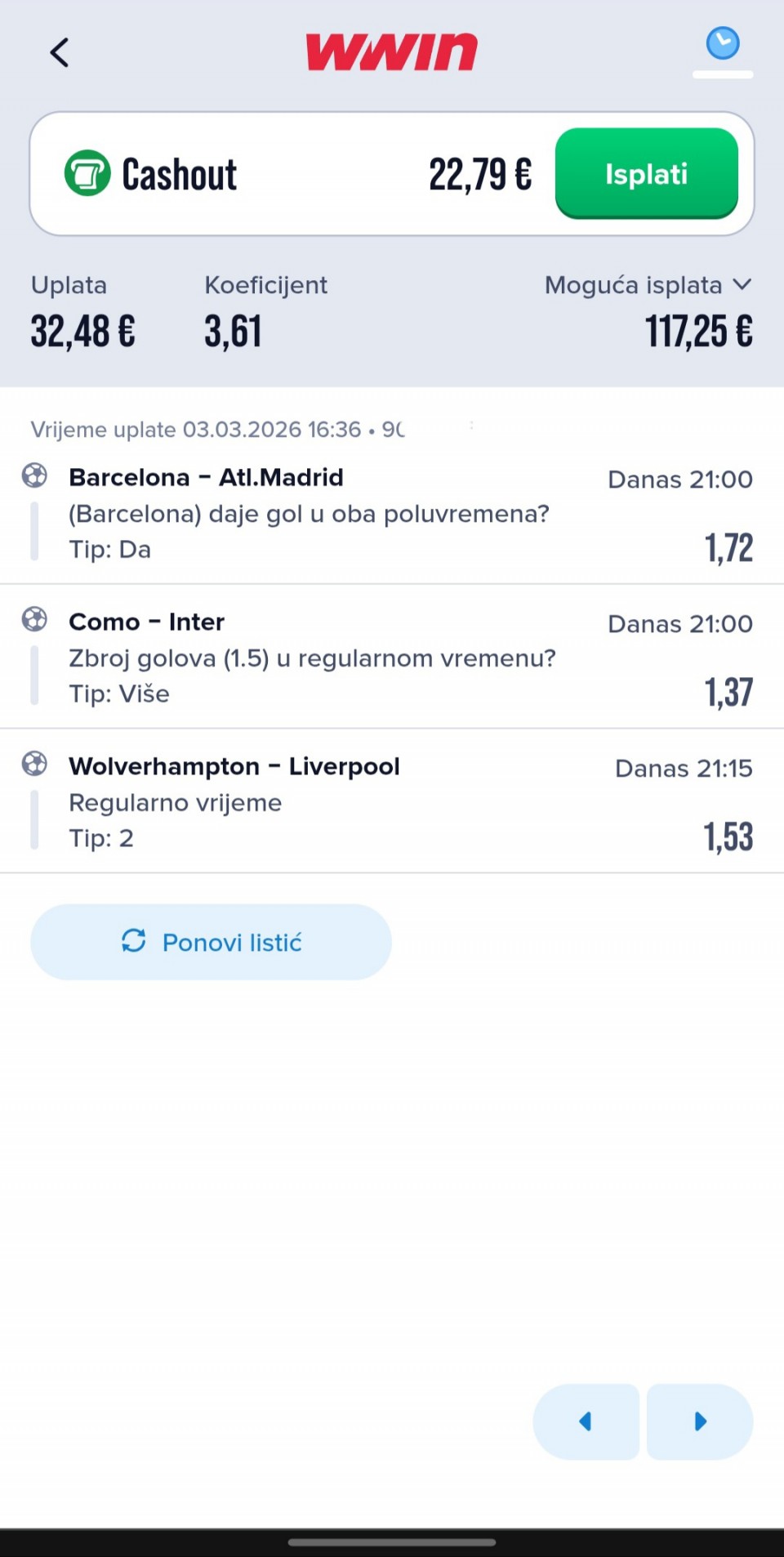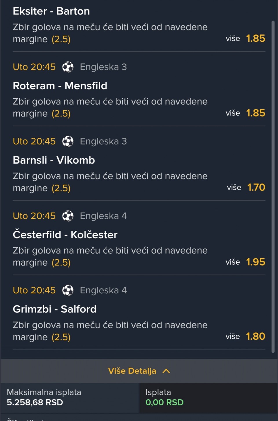 Treba mi savjet kakav vam je ovaj kolege prijedlog ? Za sada je samo prijedlog takoder slusam i savjete i mozda dodat jedan par ? Najblize mi je sporting i porto mozda oba gol ili kartoni over ? Ajmo nesto zajednicki iskombinorat .manje parova veci...Treba mi savjet kakav vam je ovaj kolege prijedlog ? Za sada je samo prijedlog takoder slusam i savjete i mozda dodat jedan par ? Najblize mi je sporting i porto mozda oba gol ili kartoni over ? Ajmo nesto zajednicki iskombinorat .manje parova veci ulog moja klasicna igra Show more