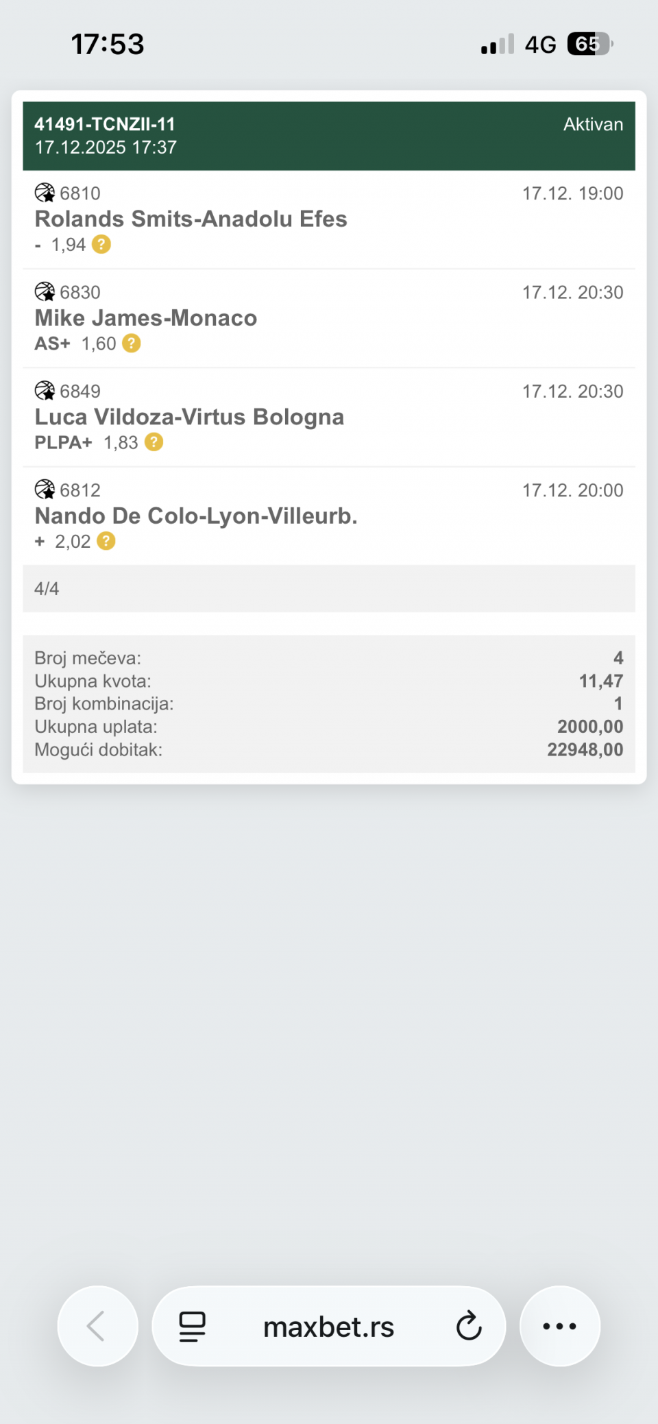 Jos ovo za danas, ne zalecite se, odigrano cisto da s eisprati Evroliga.. Srecno🍀🤞