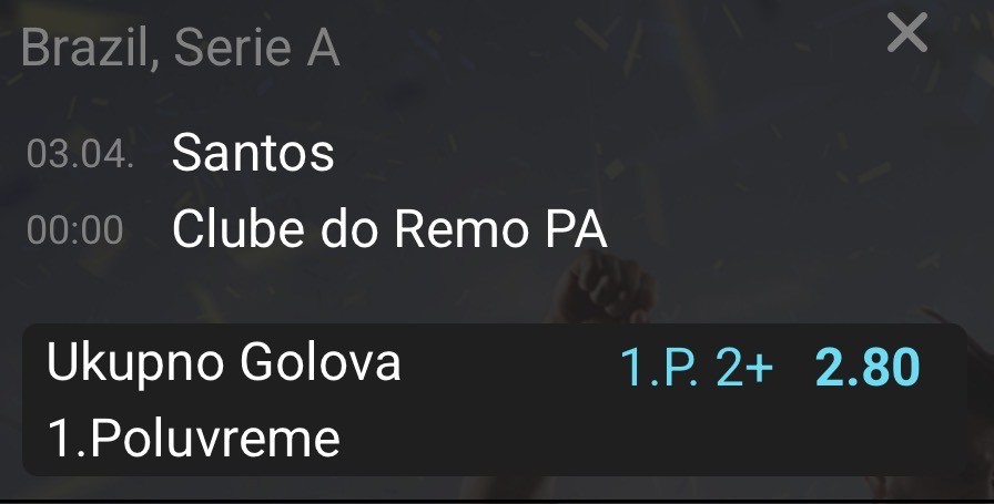 🇧🇷 00:00 Santos - Remo 1 (1.63)/ Neymar daje gol (2.09)