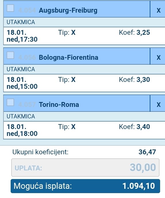 Ja sam licno odigrao sve od ovoga sa najvecom uplatom na 3+ koju ocekujem da prodje najlaganije......