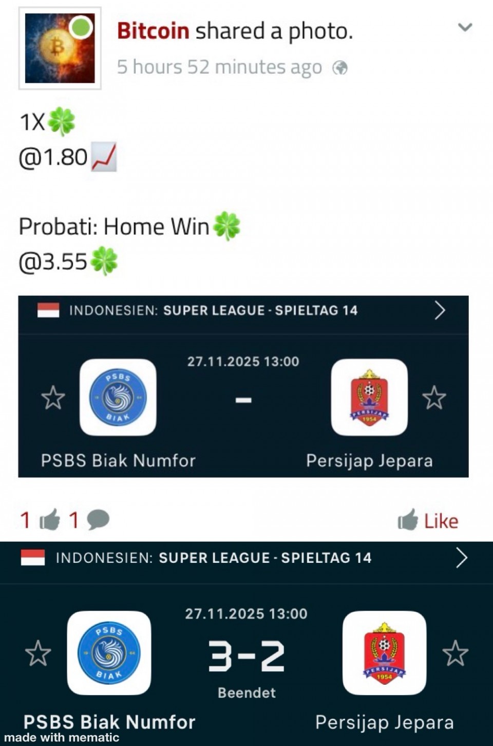PSBS-Persijap winer 1 kvota 1.90 (u slučaju neresenog kvota 1)