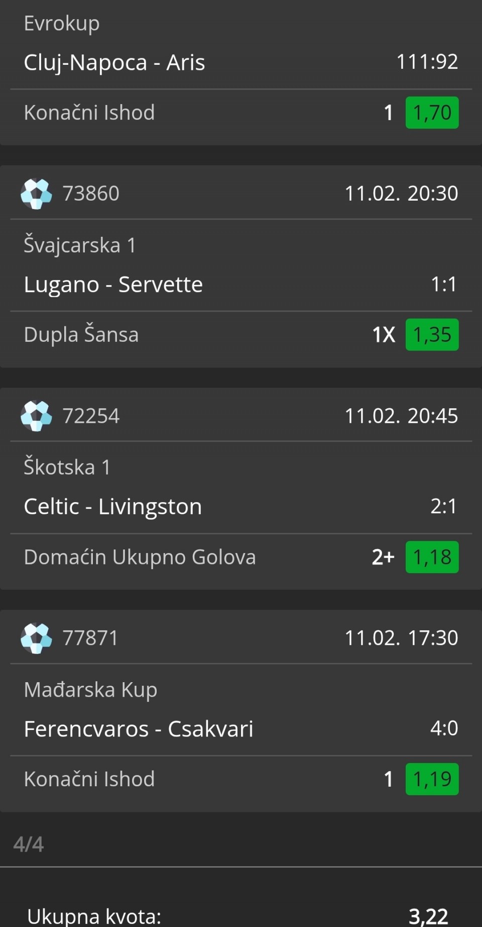 Samim tim, veceras je sve moguce. Tako da su karte za sva 4 tima još uvek otvorene. Rapid nema prava na gresku i mora da ide na pobedu. U poslednjem kolu su remizirali sa Petrolulom i moraće danas da isprave tu grešku. Medjutim sa druge strane je CFR Cluj trenutno u najboljoj formi u ovoj sezoni sa 7 vezanih pobeda. Kup je važan za obojicu, jer garantuje mesto u Ligi Evrope. Sve u svemu, ne očekujem zatvorenu utakmicu. Rapid zeli da dodje do ranog gola, dok je sa druge strane Cluj dosta motivisan, da nastavi tamo gde je stao. Samim tim probacemo tip 3+, na manji ulog. Srecno!