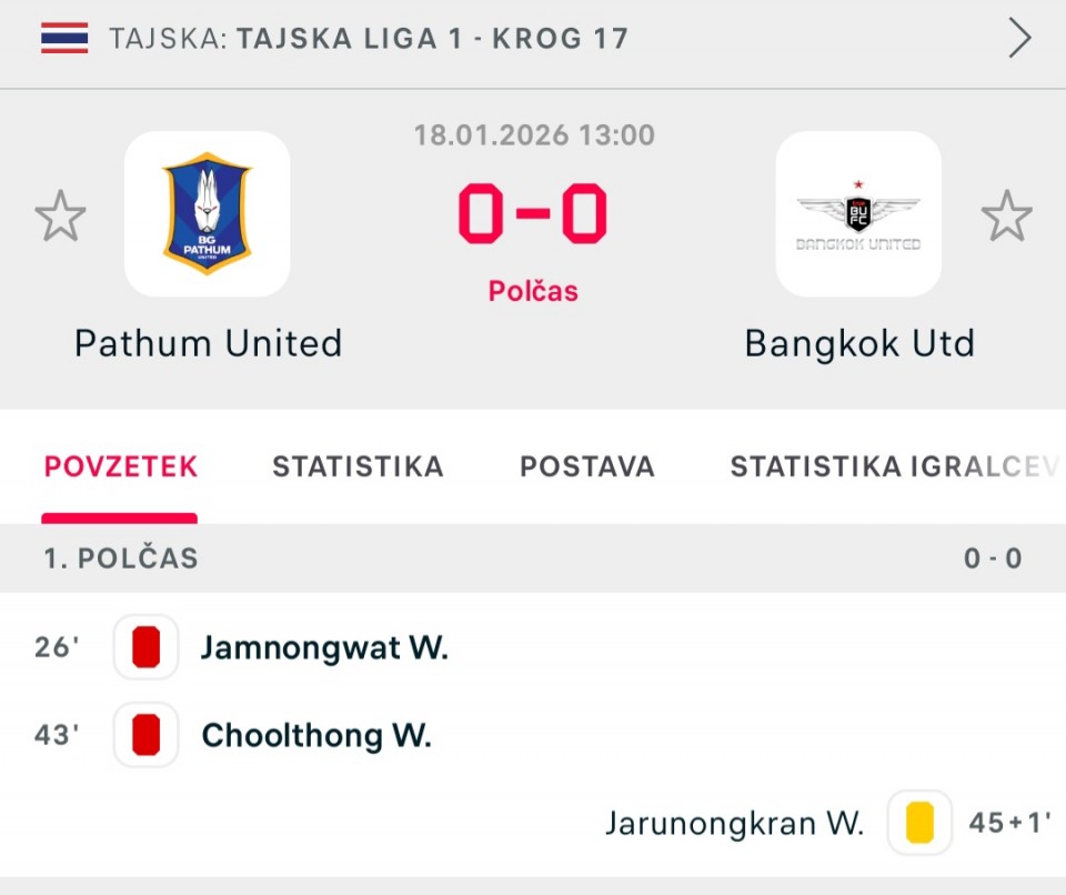 Pathum - Bangkok 0:0 (50 min)