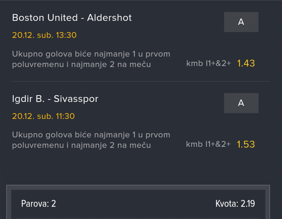 ➡️ 1+ gol u 1. poluvremenu & 2+ gola na meču