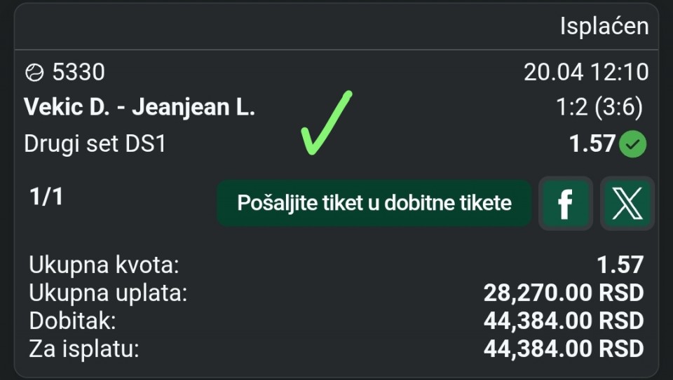 tip: 1 (43 minut trenutni rezultat 1:1)