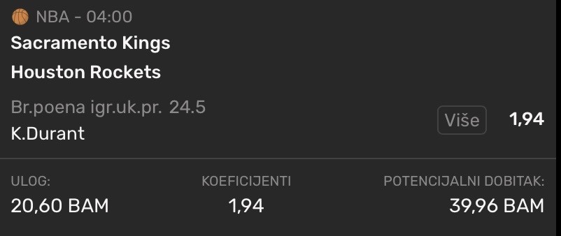 Kevin Durant over 24.5 poena kv 1.94🍀