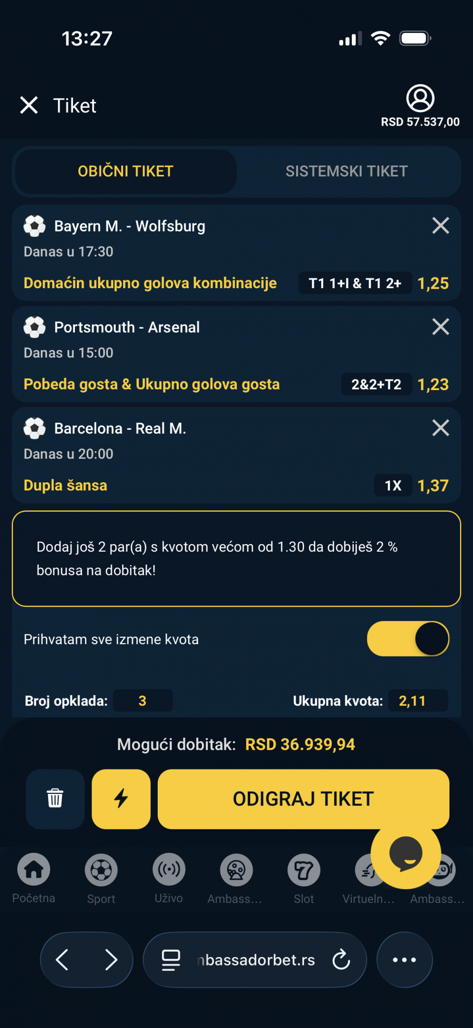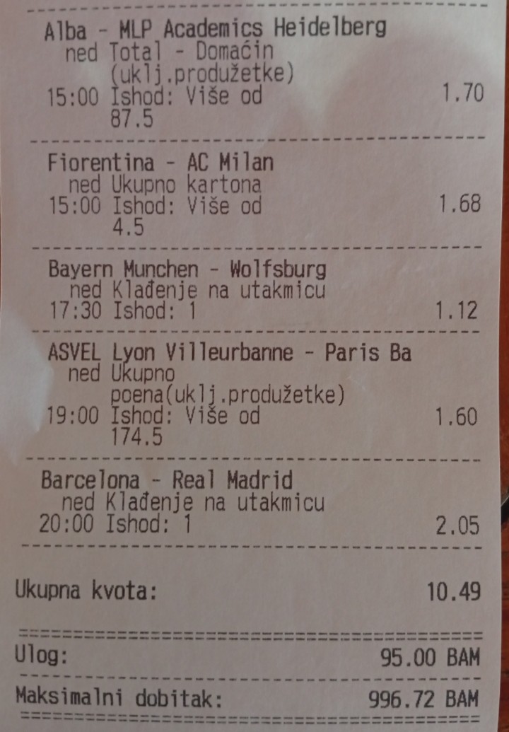 Danas iman neke kombinacije ali evo moze te dat Prijedloge ,tako je smatram najbolje . Stavi te svoje prijedloge . Sritnoo svima ,idemo gas 💪💪😃