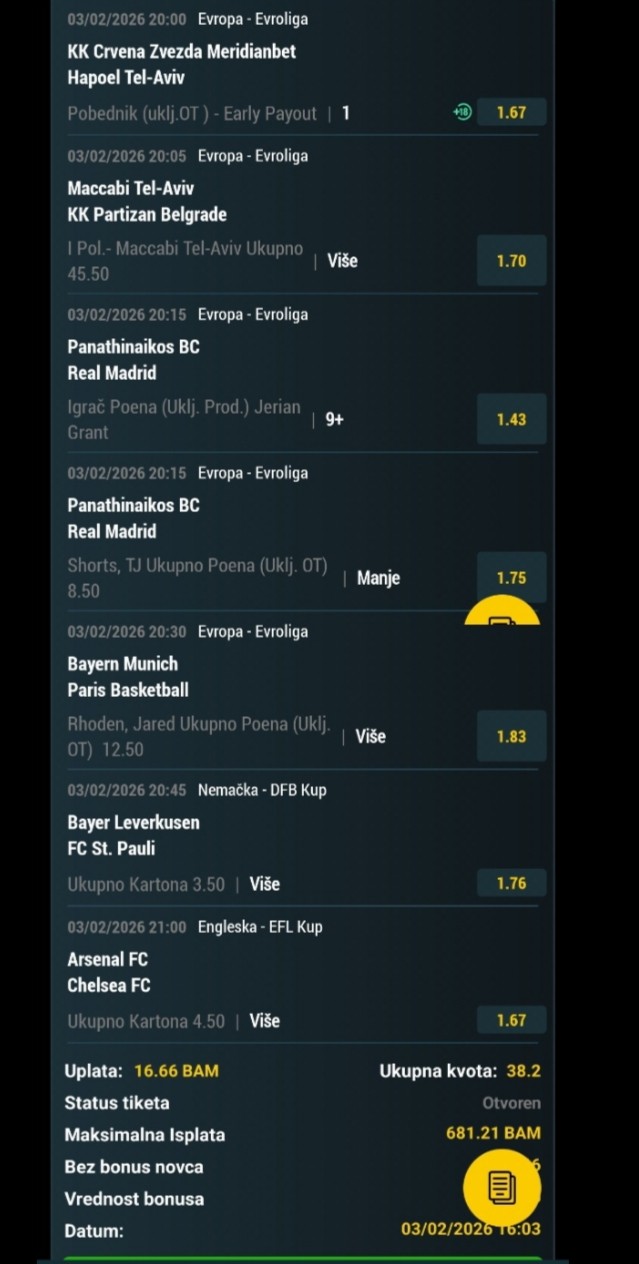 Ajde na ovom postu da pomognemo ljudima da pisemo samo o EUROELAGUE danas, ima puno utakmica verujem da ljudi traze ovde kao i ja