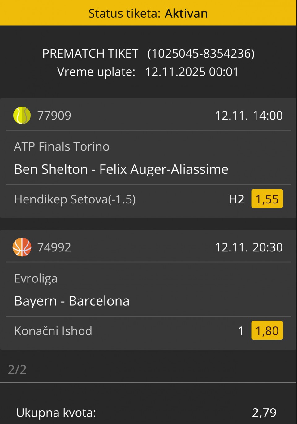 Probaću od sad samo 1.80 kvote pa na gore, čisto da ispratim ove mlađe