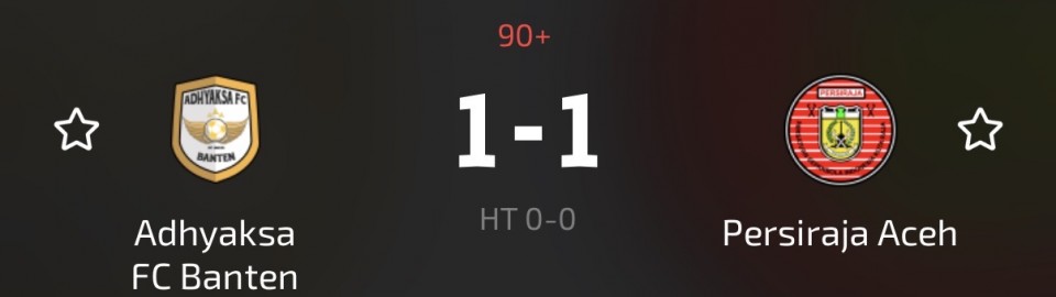 🇮🇩 09:30 Adhyaksa - Persiraja Aceh G1+ (1.72) #WIN ✅
