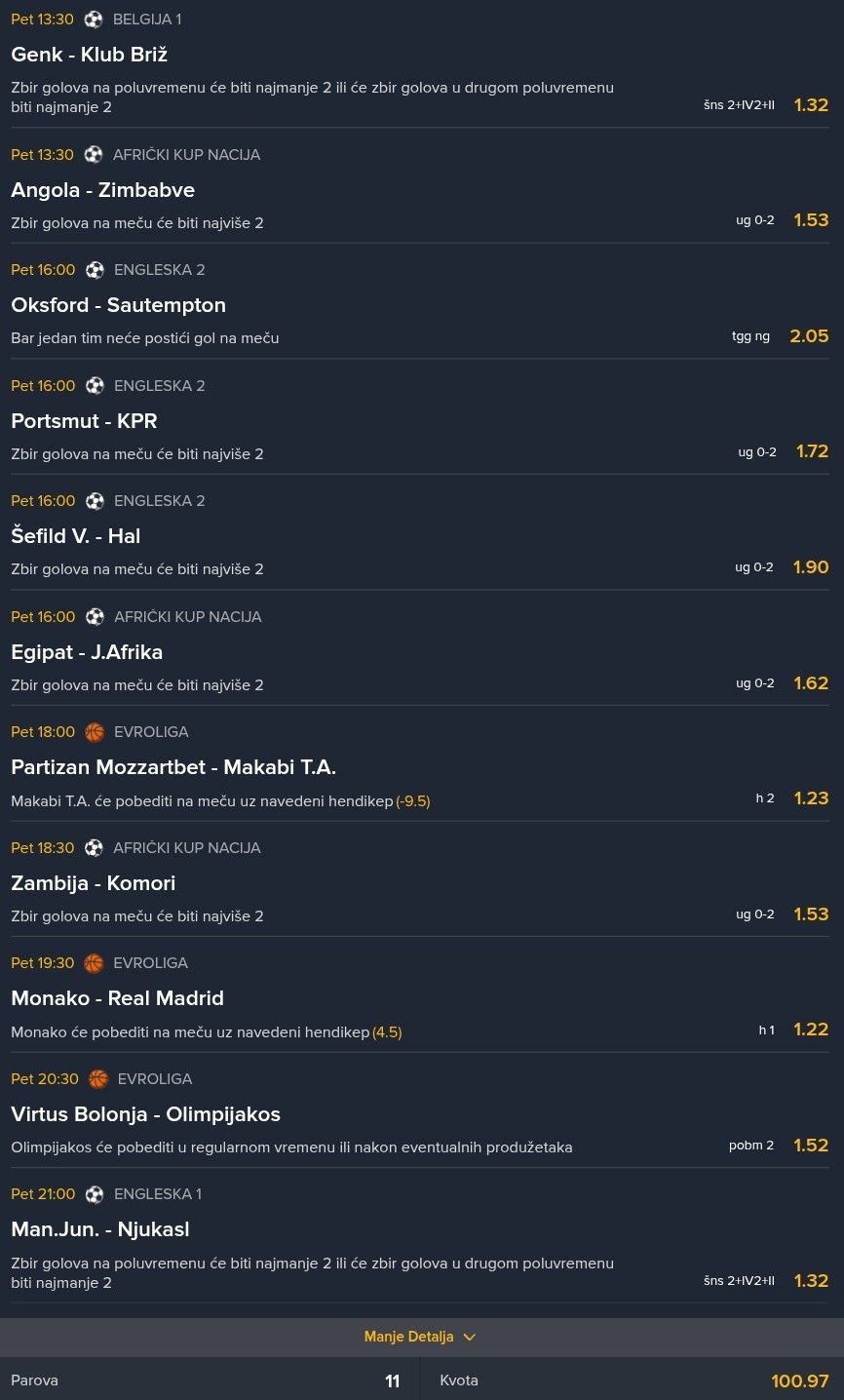 Ovo su bukvalno kladioničarske lige i utakmice, mislim da vredi probati po ovakvim kvotama