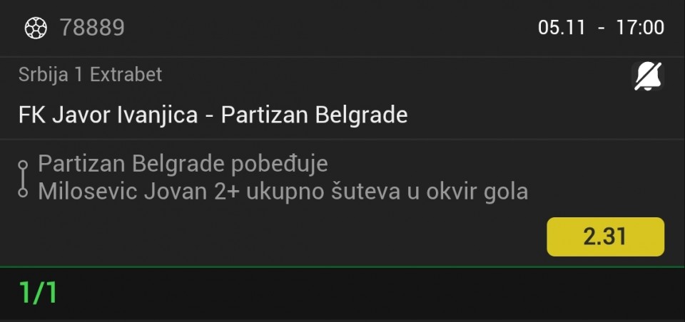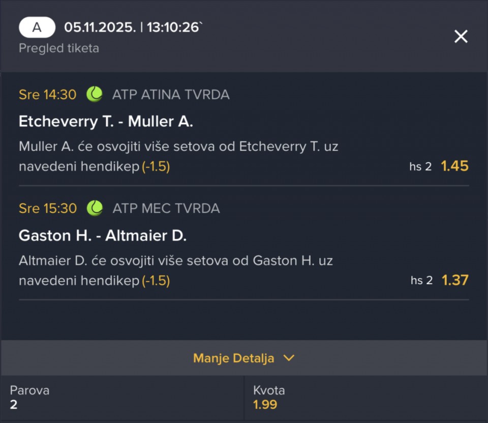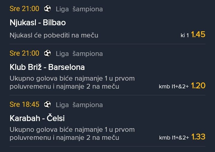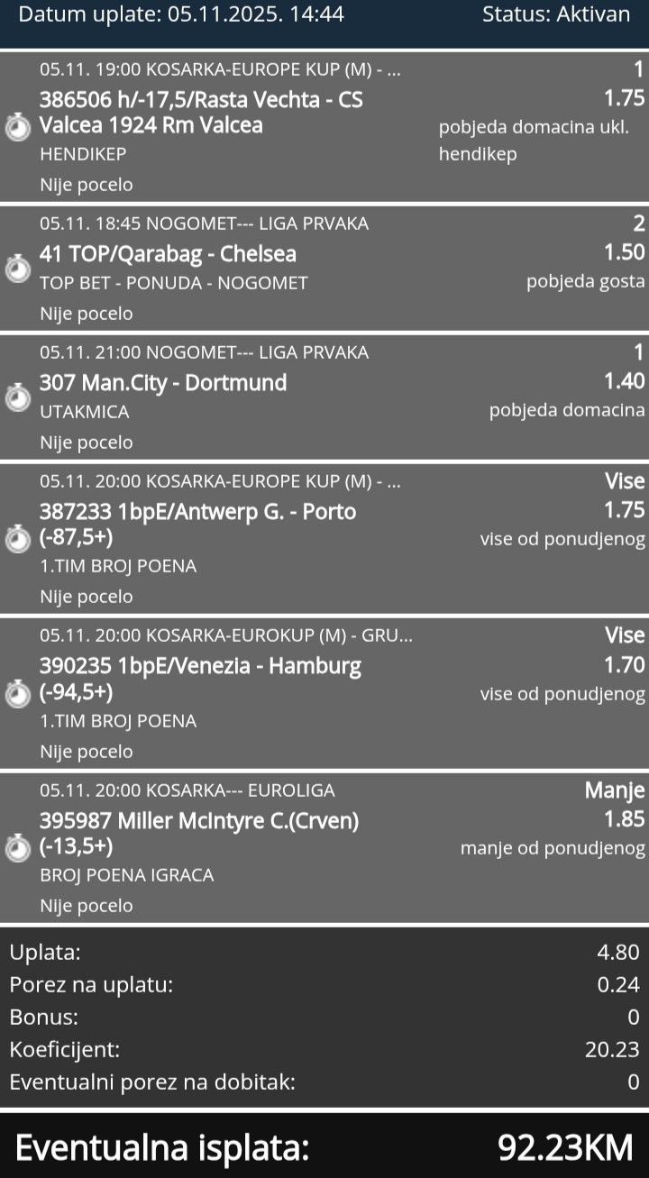 sutra mozda krenemo sa koracima da jurimo triple i dubl, ovaj treci tip cu da izbacim zbog neki ljudi ovde sto prate da ih ne buni evidencija i manje rizikuju novac oko ulaganja, a ja cu svakako za sebe juriti i mix tiket