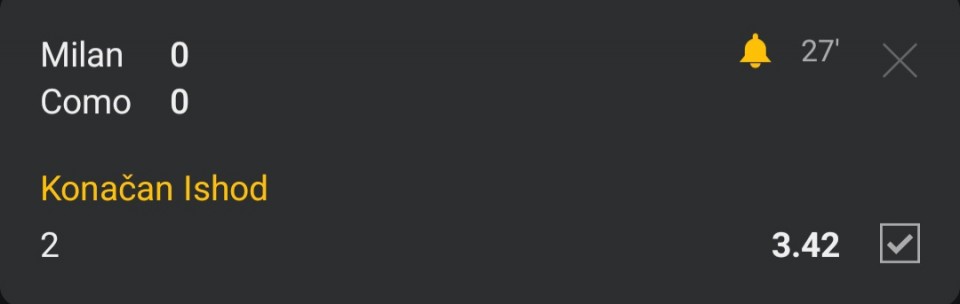 tip: over 2.5 (80 minut trenutni rezultat 2:0)