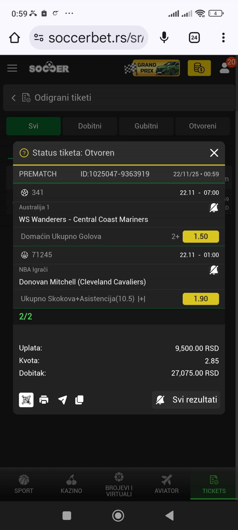 ⚠️ PREDLOG evroliga tiket