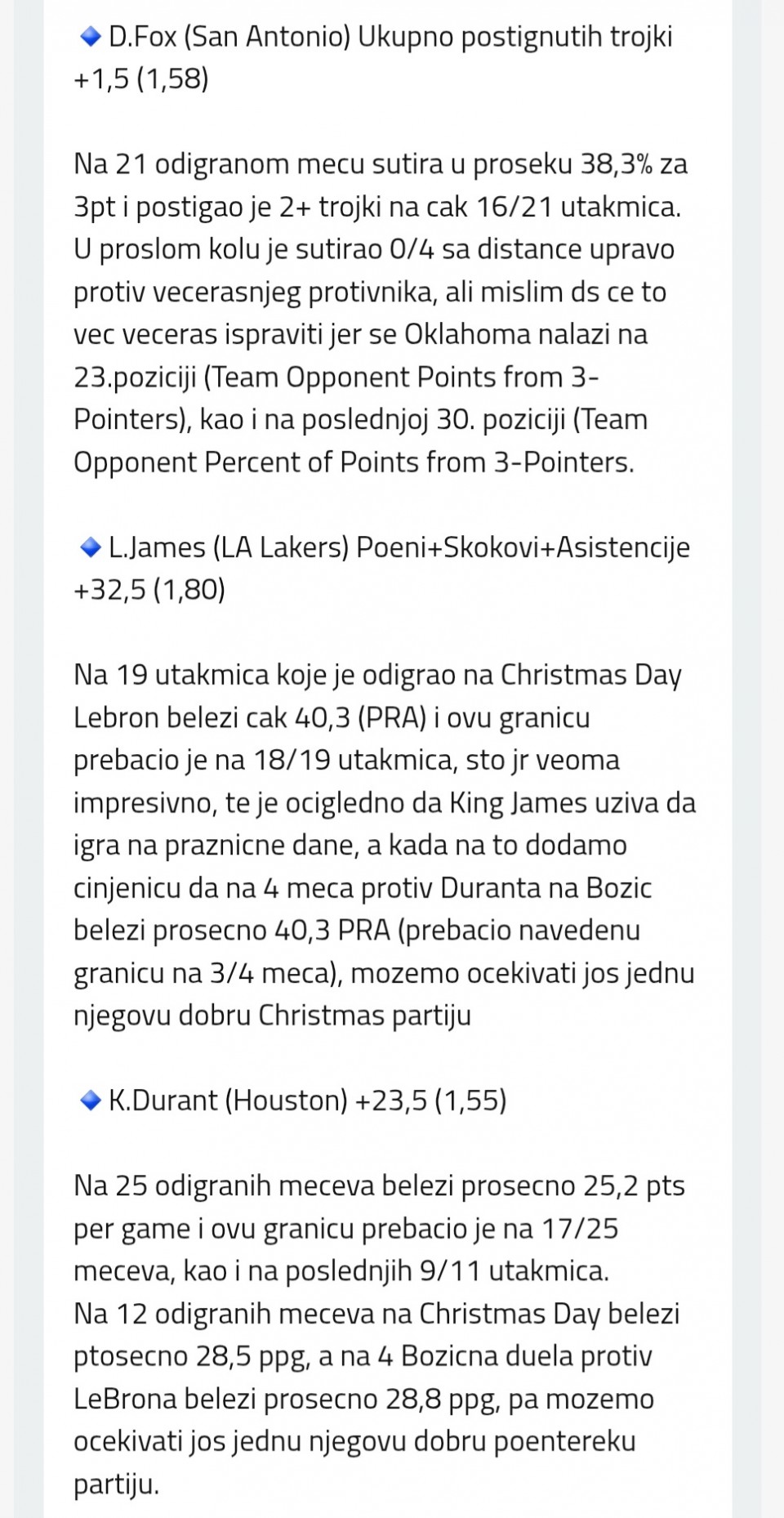 🔹️D.Fox Uk. postignutih trojki +1,5 (1,58) ✅
