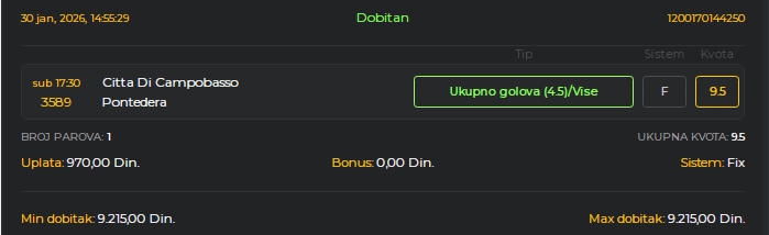 Niz od 9 utakmica sa 3+ vrijedi probati na ovoj kvoti