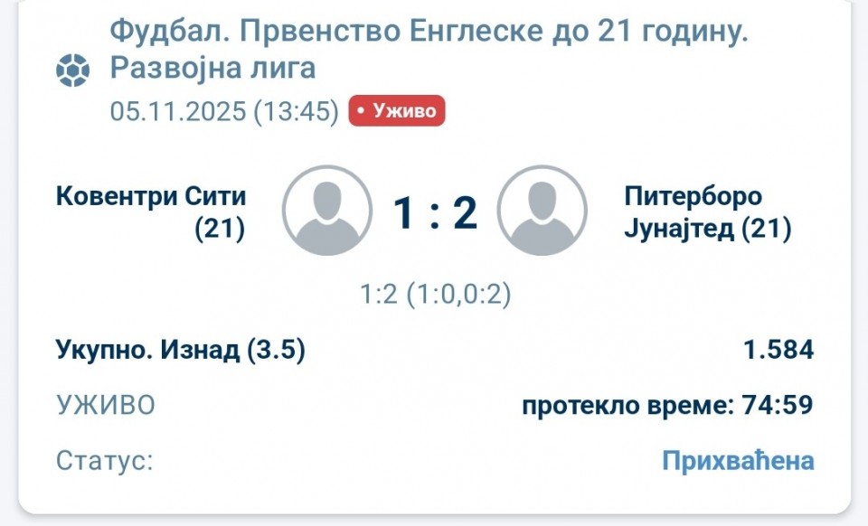 tip: X2 ( poluvreme trenutni rezultat 2:0)
