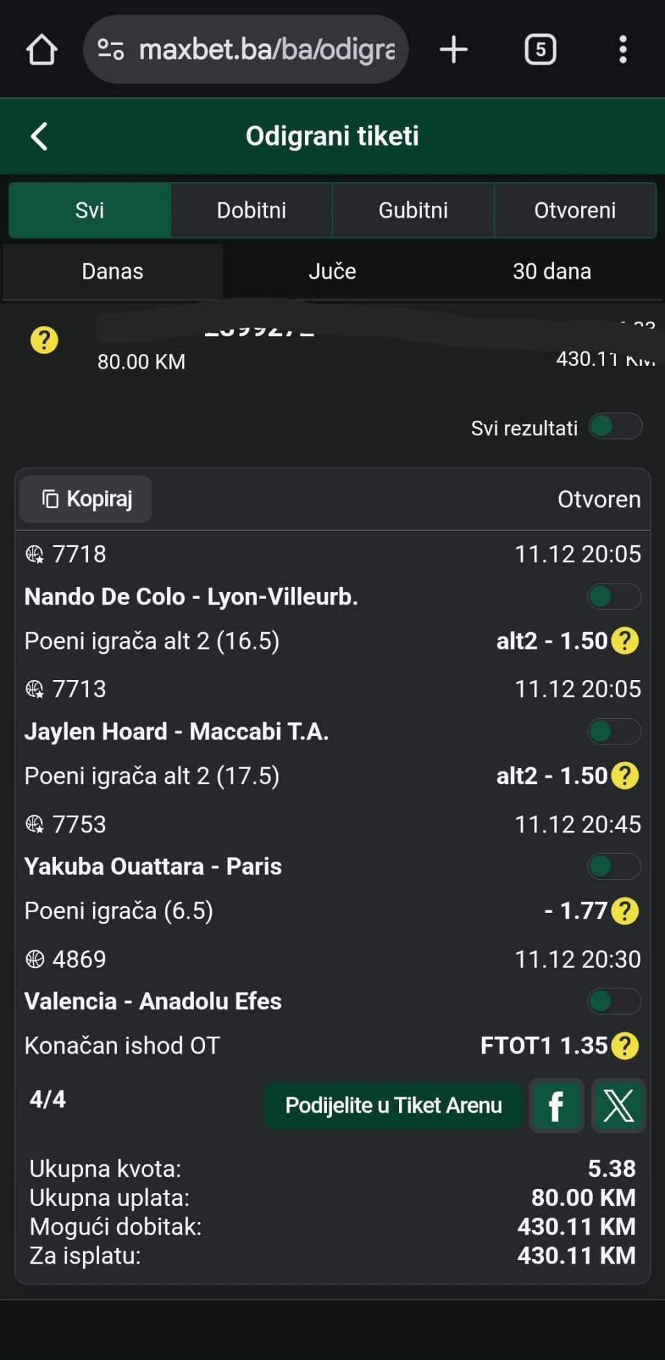 Bio je u kanalu ali nakon reprezentativne pauze opet igra vrlo dobro ,kao na početku sezone . Protiv Efesa od prvih 10 poena čini mi da je postigao on sam ,završio na 22 poena iz 16 suteva . Onda opet liga i vs Tenerife...Hezonja over 13.5 stake 8/10