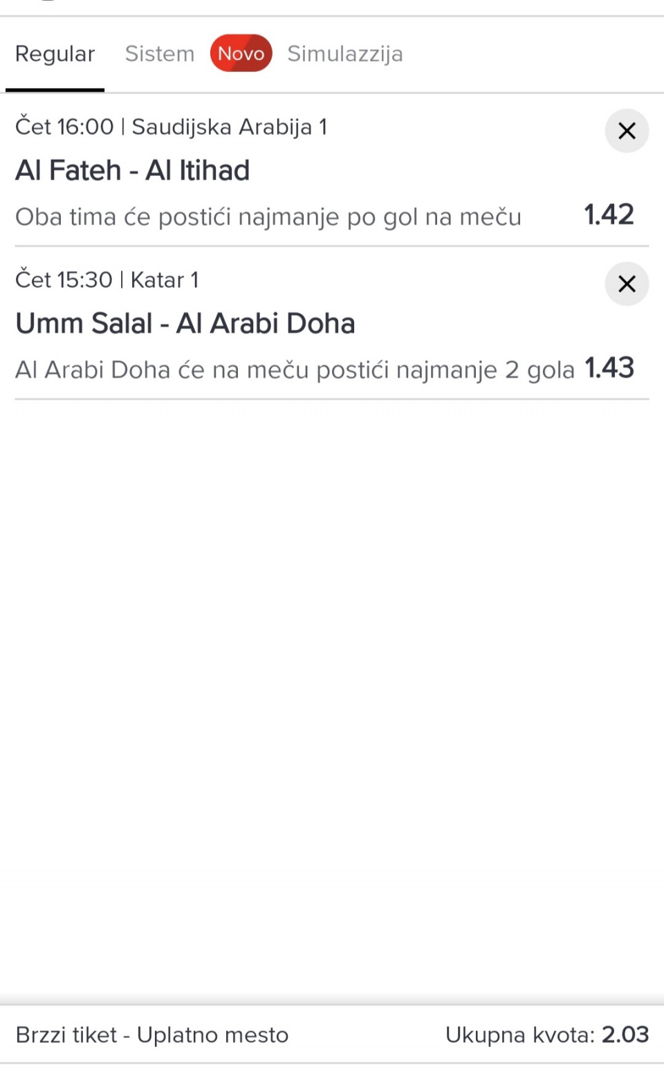 Juce slabo, od dnevne ponude za danas igram samo ovu prijateljsku utakmicu, a za veceras videcemo…