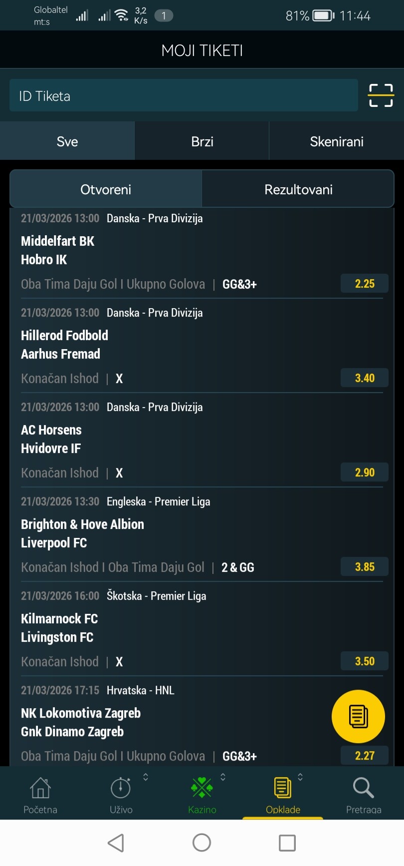 Ajmo po jos jedan pad uzivo hong kong li men ratnici 19.min 0:0 2+pp kvota 3