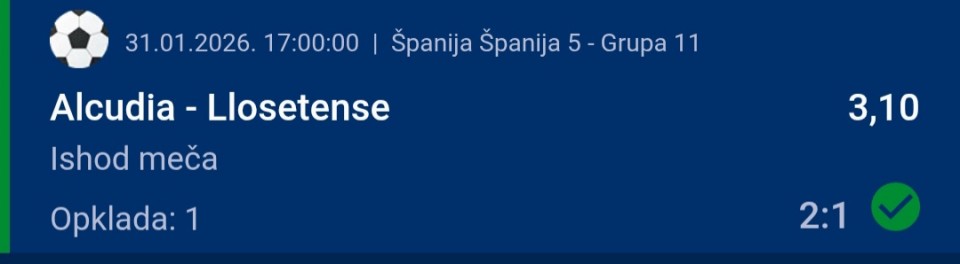 2:1 (kvota 8.00)sretnoo,nadam se da cemo ponovo objavit ovaj status posle zavrsetka tekme 🙏