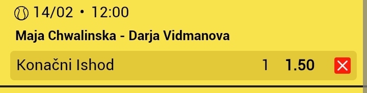 14.02.2026. 21:00h Castellon - Dep. La Coruna; tip: X; kvota: 3.50; uplata: 180,00 din.; isplata: 630,00 din.