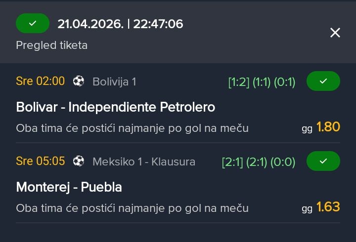 dublić "GG" @2.93 malo ruzičan ali jurimo dok nam ne pozeleni 🍏