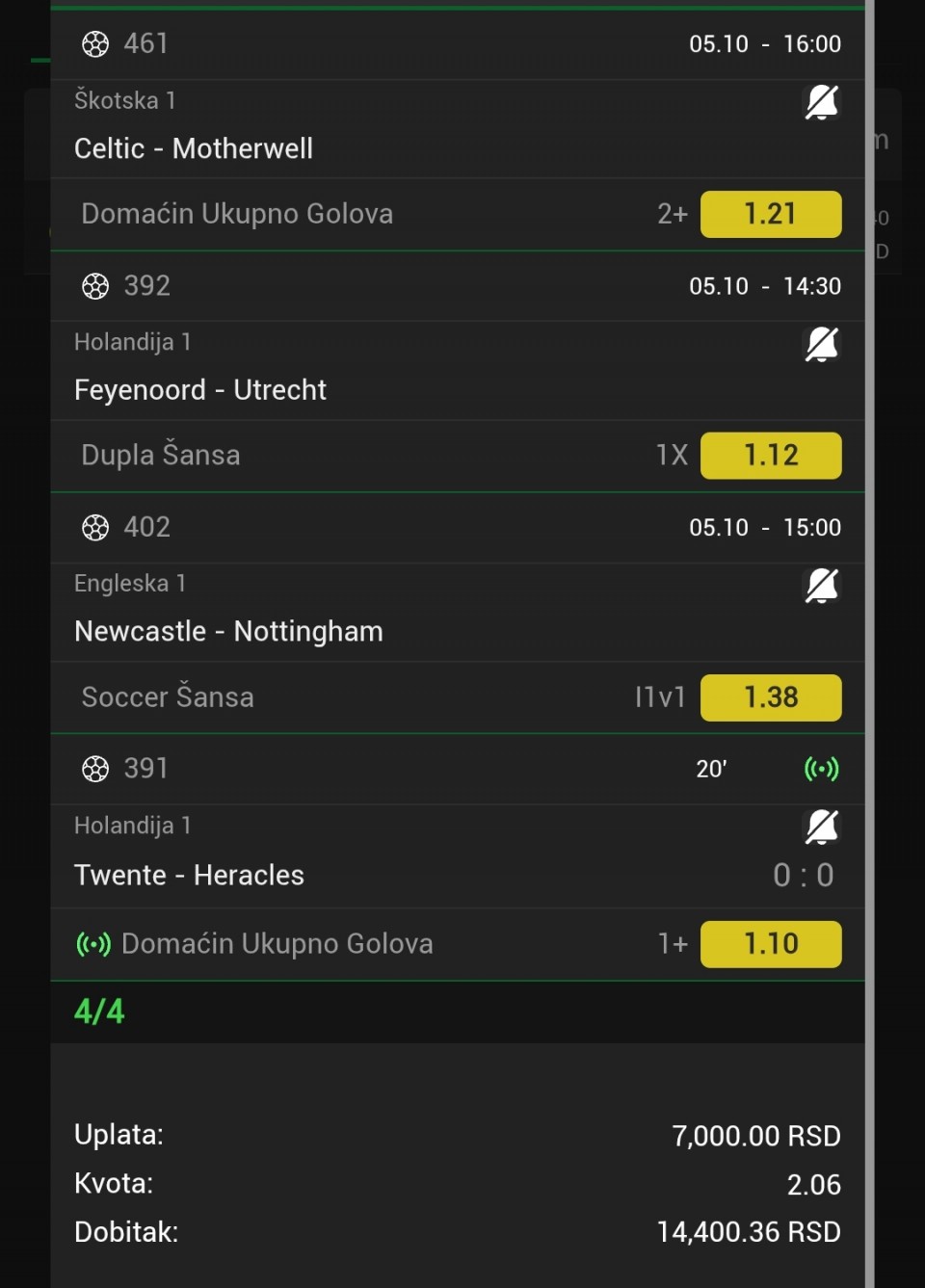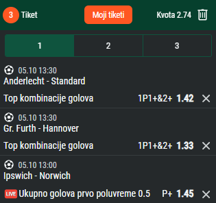 Ukupna kvota : 2,27 -...Uvijek postoji neka mina kada su favoriti u pitanju ali ova tri para sam izdvojio djeluju mi kao najsigurniji od svih.