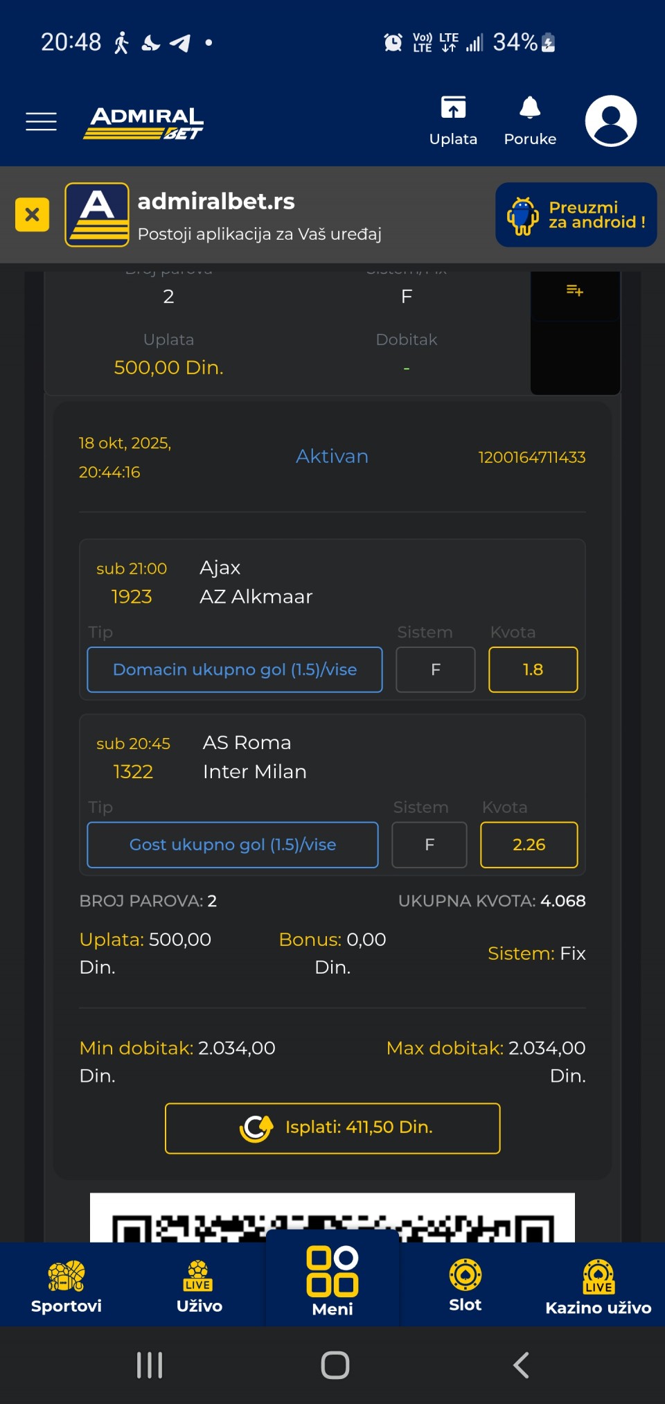 Live Oran 1,5+ 2 20 , 77 min.Domacin vodi, La Serena 1,5 + 1,95 ,na sitno Maxbet Sretno