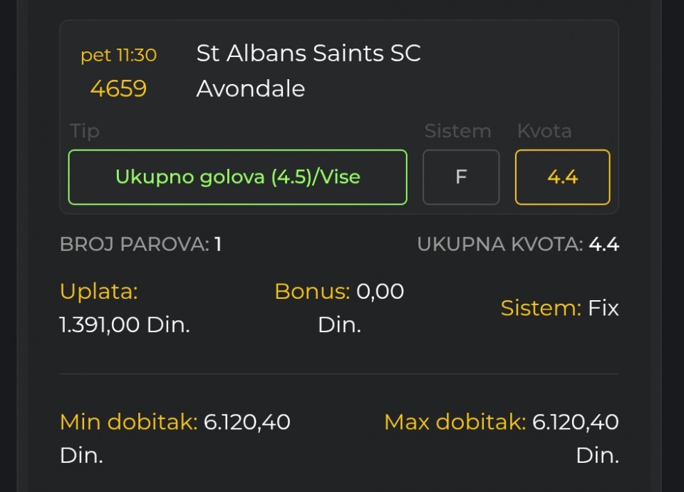 Danas krecem pogadjanje kvote 1.80 barem 8/9 puta… da vidimo kako ce ici. Svaki put kad prodjem ulazem dobijeni iznos opet!