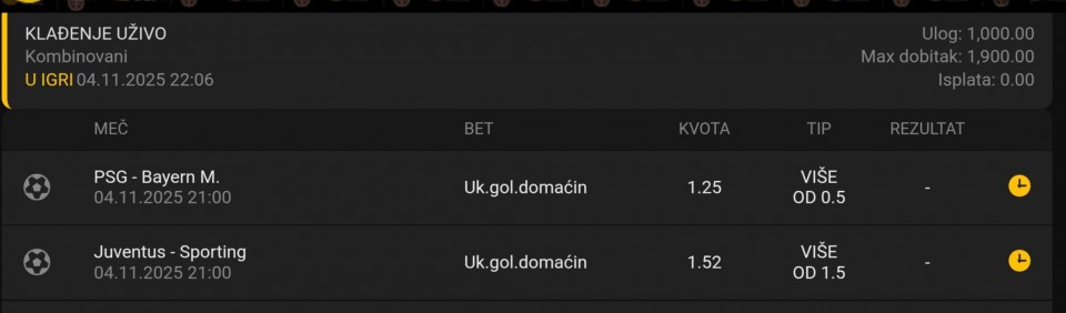 tip: over 1.5 (70 minut trenutni rezultat 0:1)