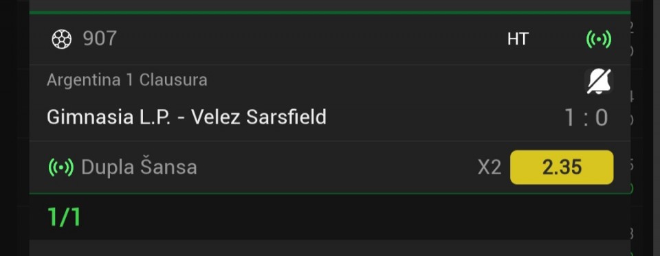Malopre sam saznao da su domacini u jako teskoj finansijskoj situaciji i da su bojkotovali trening pred mec sa Velezom. Igracima se duguje plate. Igracima iz mladjih kategorija dok prvotimcima sa jacim platama. Duguje se nekoliko plata. Ako sam...Malopre sam saznao da su domacini u jako teskoj finansijskoj situaciji i da su bojkotovali trening pred mec sa Velezom. Igracima se duguje plate. Igracima iz mladjih kategorija dok prvotimcima sa jacim platama. Duguje se nekoliko plata. Ako sam dobro procitao. 4 plate im se duguje. Pukovnik ili pokojnik. Ako Velez da gol i izgubi. Na nuli sam. Gimnasia vec ima prelaz u svoju korist. 1:1 bi mi bio idealan scenario. Dvojka bi bila samo slag na torti. Show more