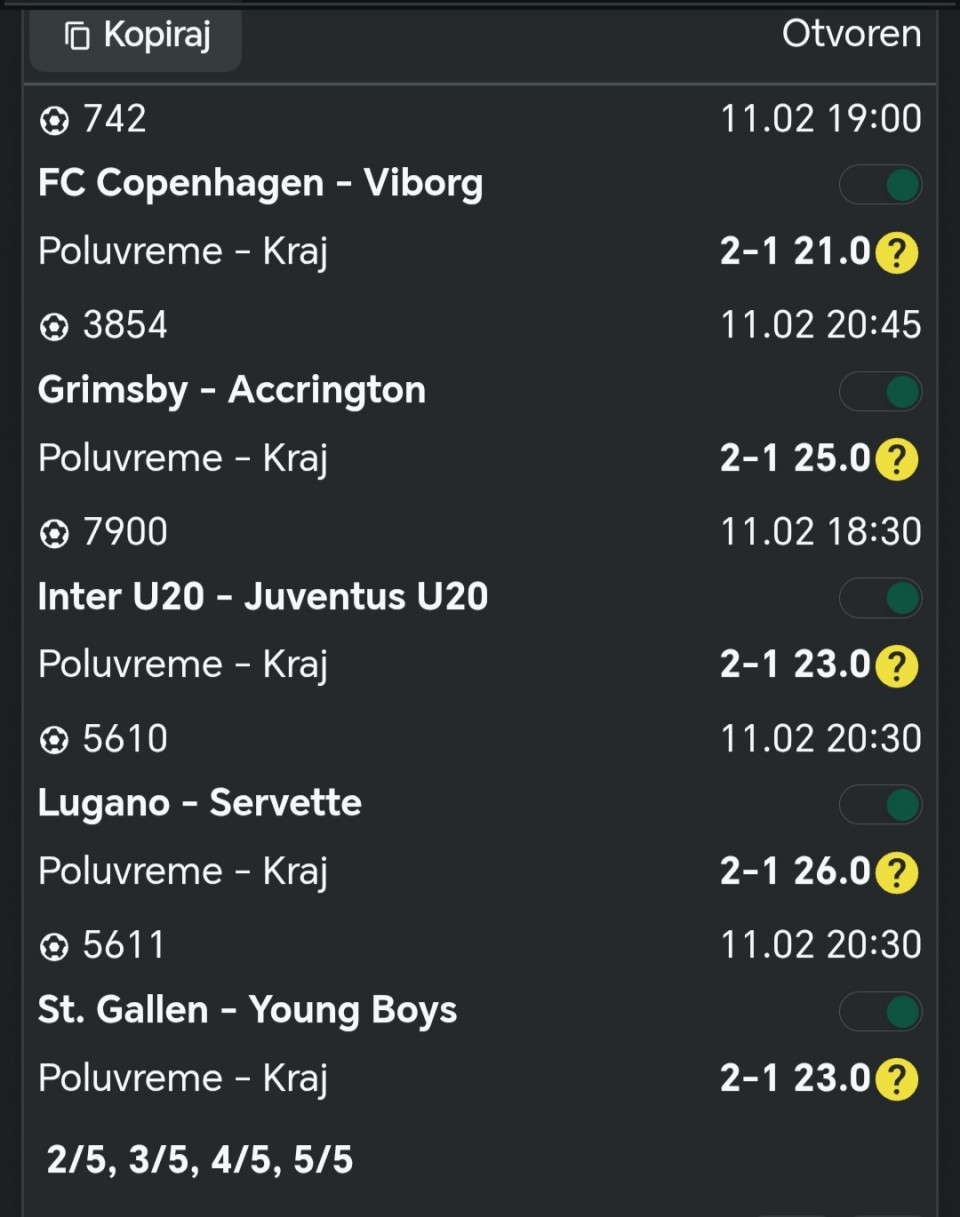 Danas ipak nista, Venezia isprasila totalno a na kraju i ovi moji nisu dobili. 🤣 Da je Venezia slucajno dobila bilo bi u poluvrijeme opet dobrog cashouta 🤣 ali ne bih uzeo danas sigurno...