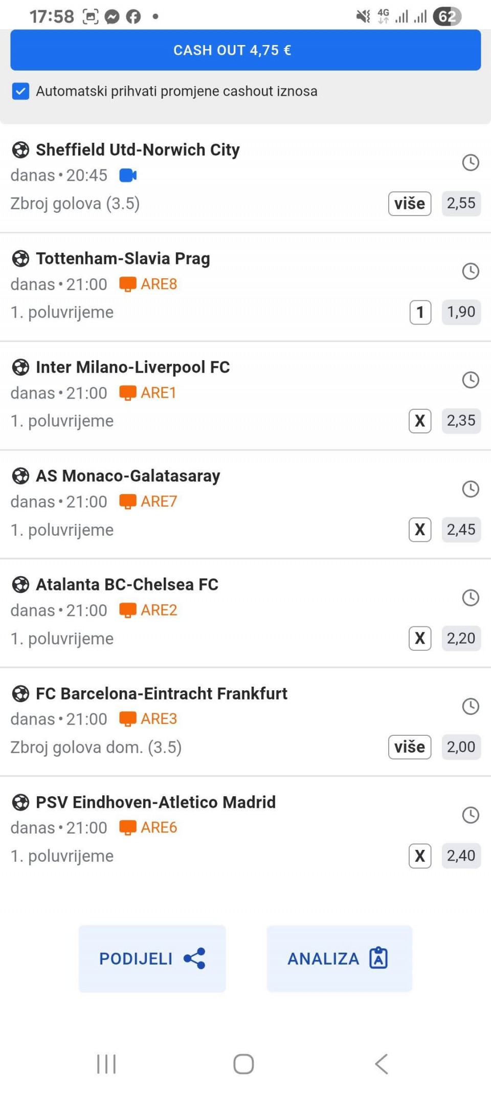 Dobro veče svima, kratka pauza s posla samo da vam napišem moje predloge za večeras pa ne zamerite što neće biti analiza