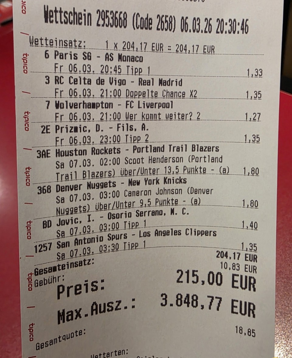 Pade 4. gol nabrzinu taman da uplatim, doslovno sekunda falila... 5. gol nije dosao iako je bilo dosta vremena. Nista odustajemo sa ovim igrom danas 25 minutes ago