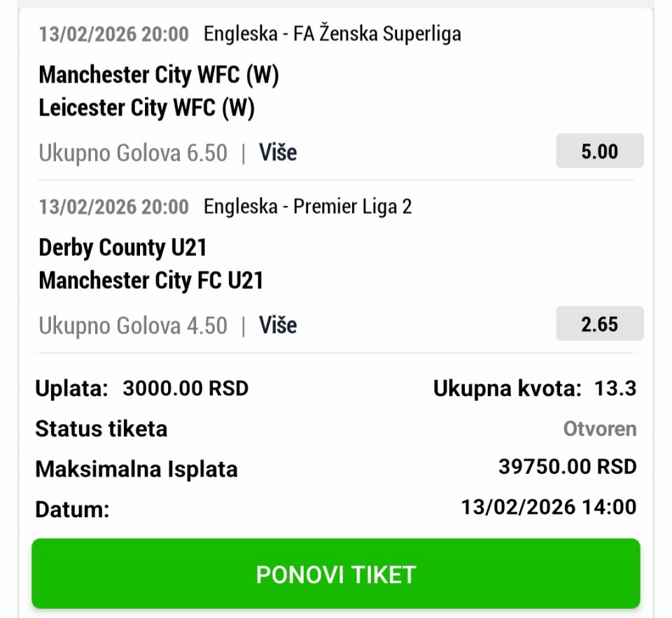Za danas dva meča od mene idem dubl i singl .Srećno drugari