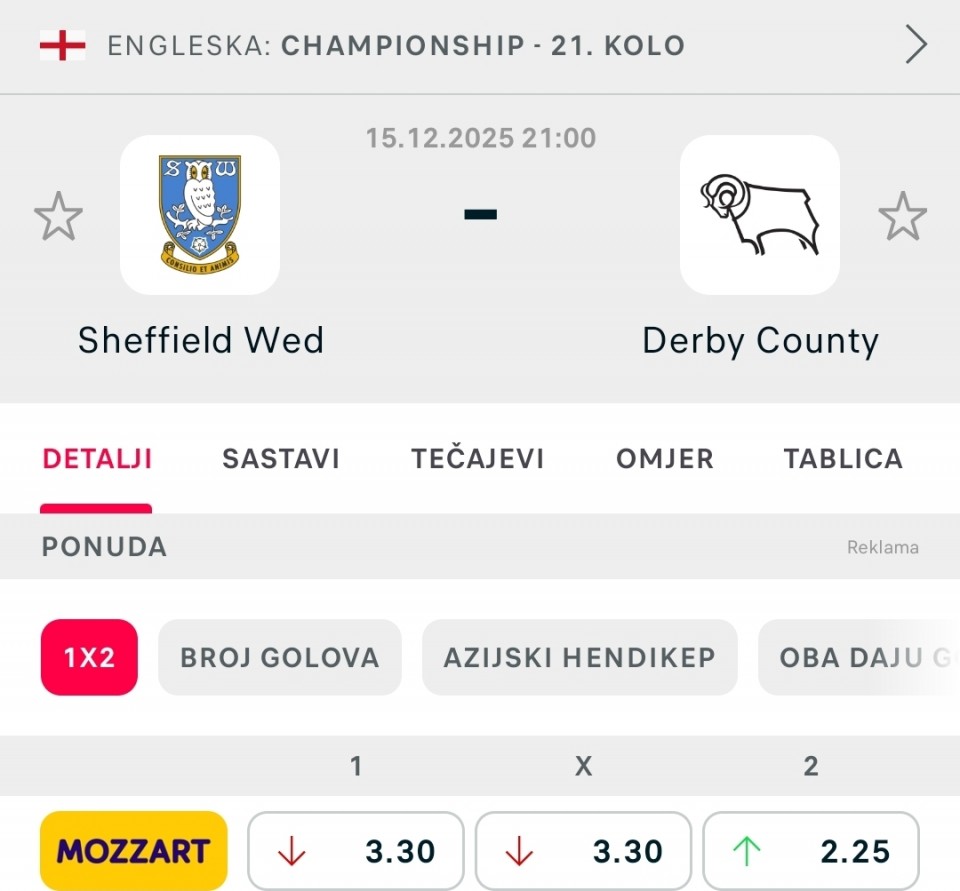 Moj tip jeste čista pobeda gosta po kvoti 2.25