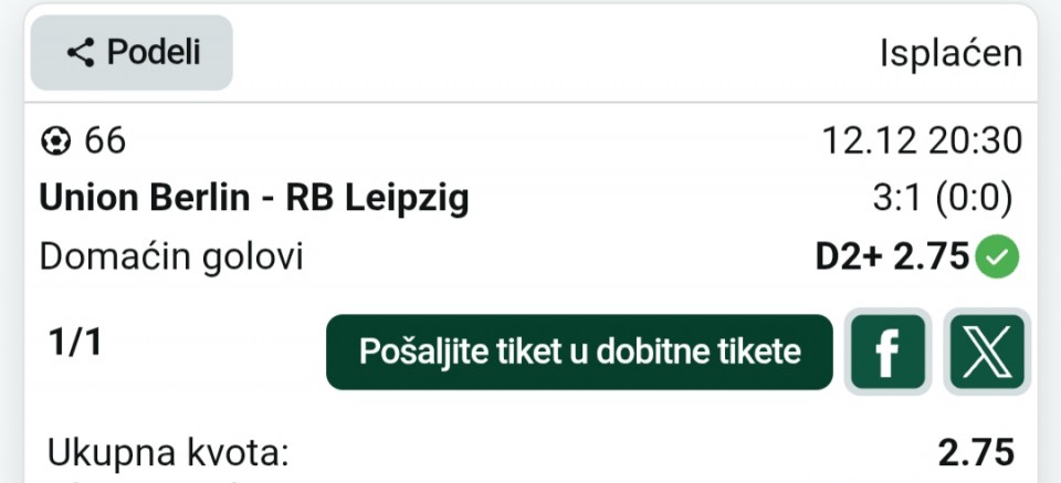 Prošao INFO kvote 1.65 i 4.00 za hrabrije mrvu…