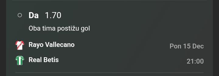 Rendzers va Hibernian GG, GG prvo blagi rizik. Izbegnuti tip 1 ovde. Braga vs Santa Klara Tim 1 + pp Tim 1 2+pp . Arezo vs Pineto tim 1 1+ pp( moguce je i gg). Rajo vs Betis drugo poluvreme 1 do 2 gola. Takav je dan, los izbor skroz.. Srecno🍻🫶😃.