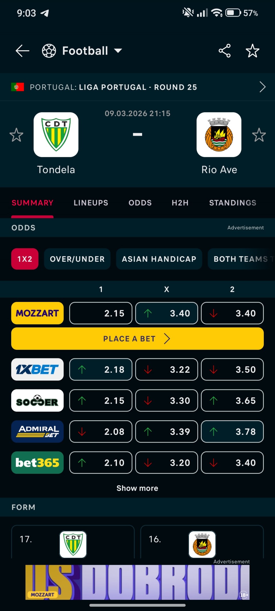 Kvota je oko 2.10 u kladionicama...