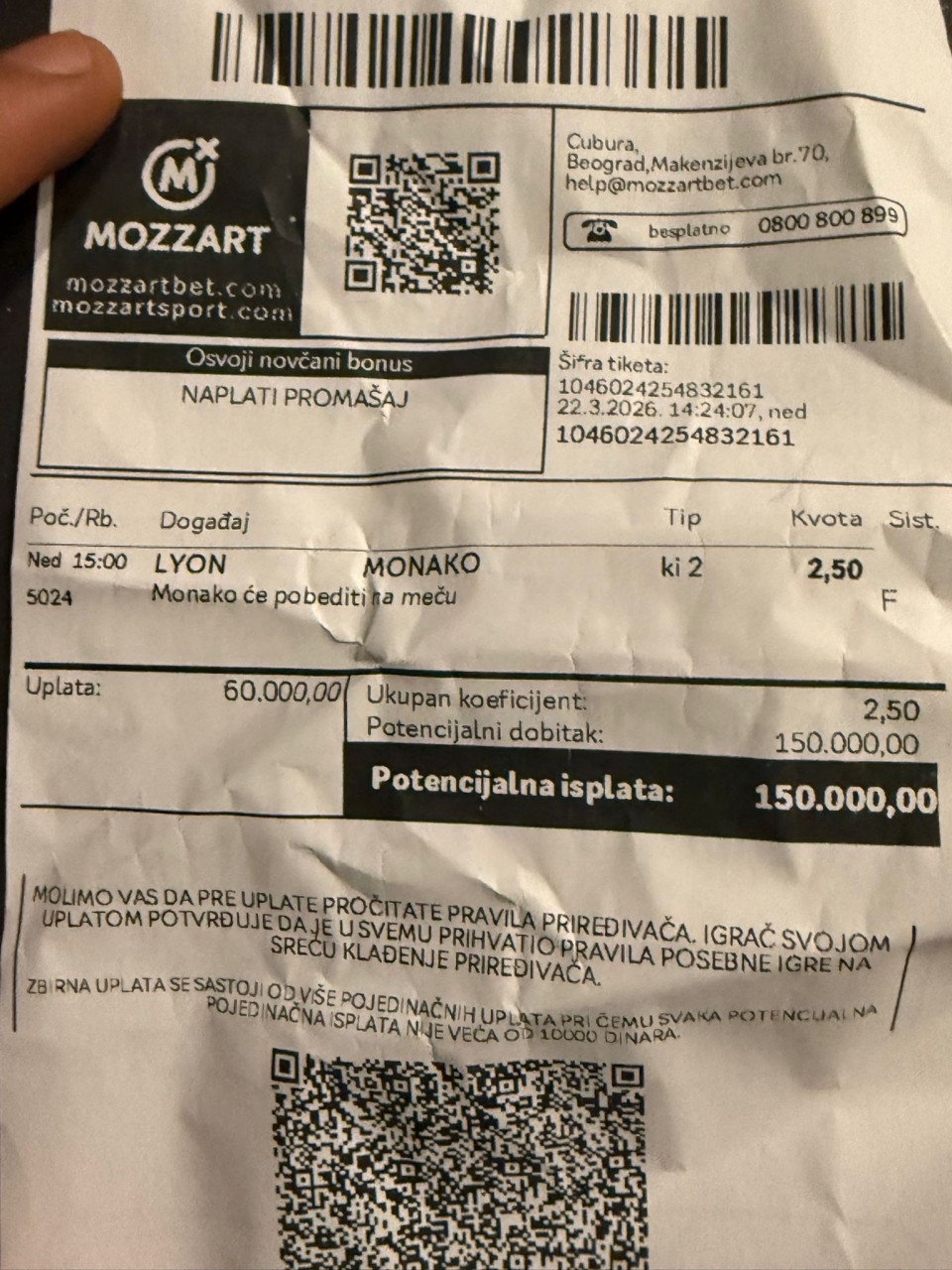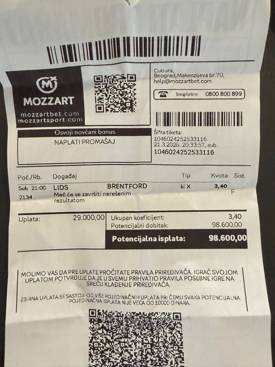 Cekao sam da se zavrsi poluvreme 0:1 pa da ganjam lom,medjutim 45+3 penal za domacina.