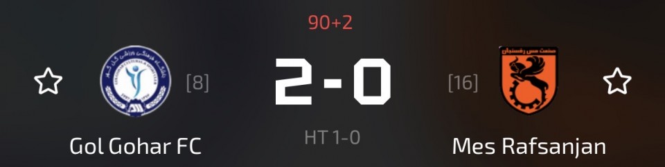 🇮🇷 13:45 Gol Gohar - Mes Rafsanjan 2+ (1.77) #WIN