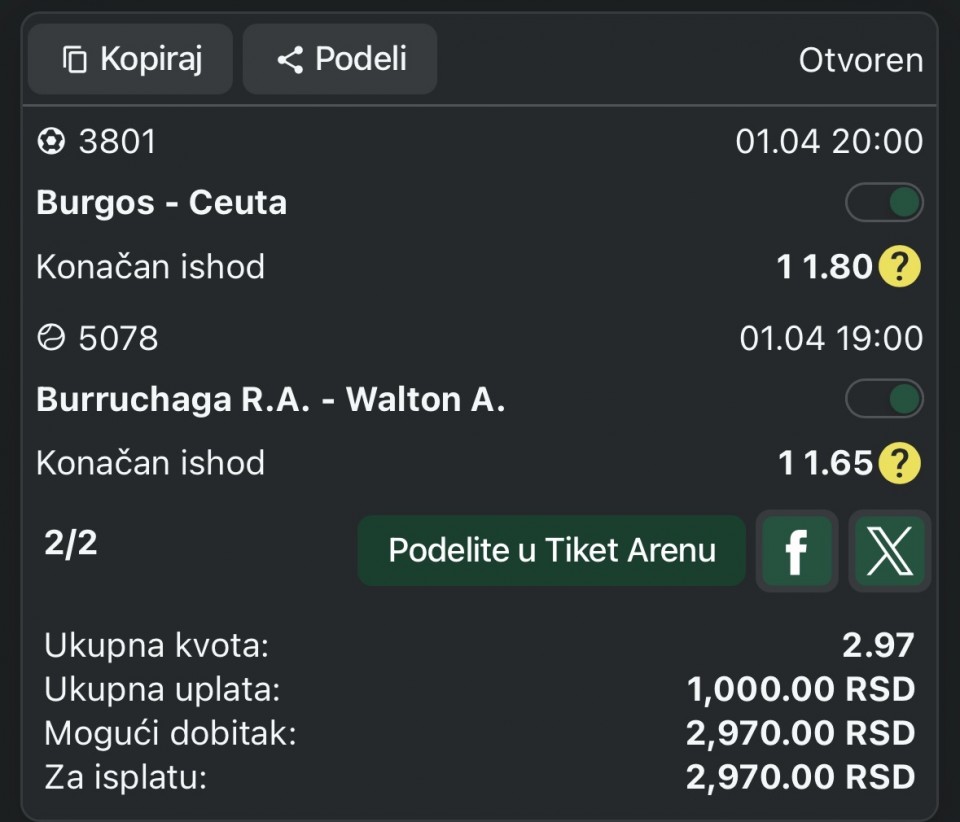 Pozdrav, trebam da iskoristim neka dva vaucera (od 1000 i 500) za kladjenje u mozzart koja isticu danas. Dajte mi najsigurniji tip gde je kvota najmanja.