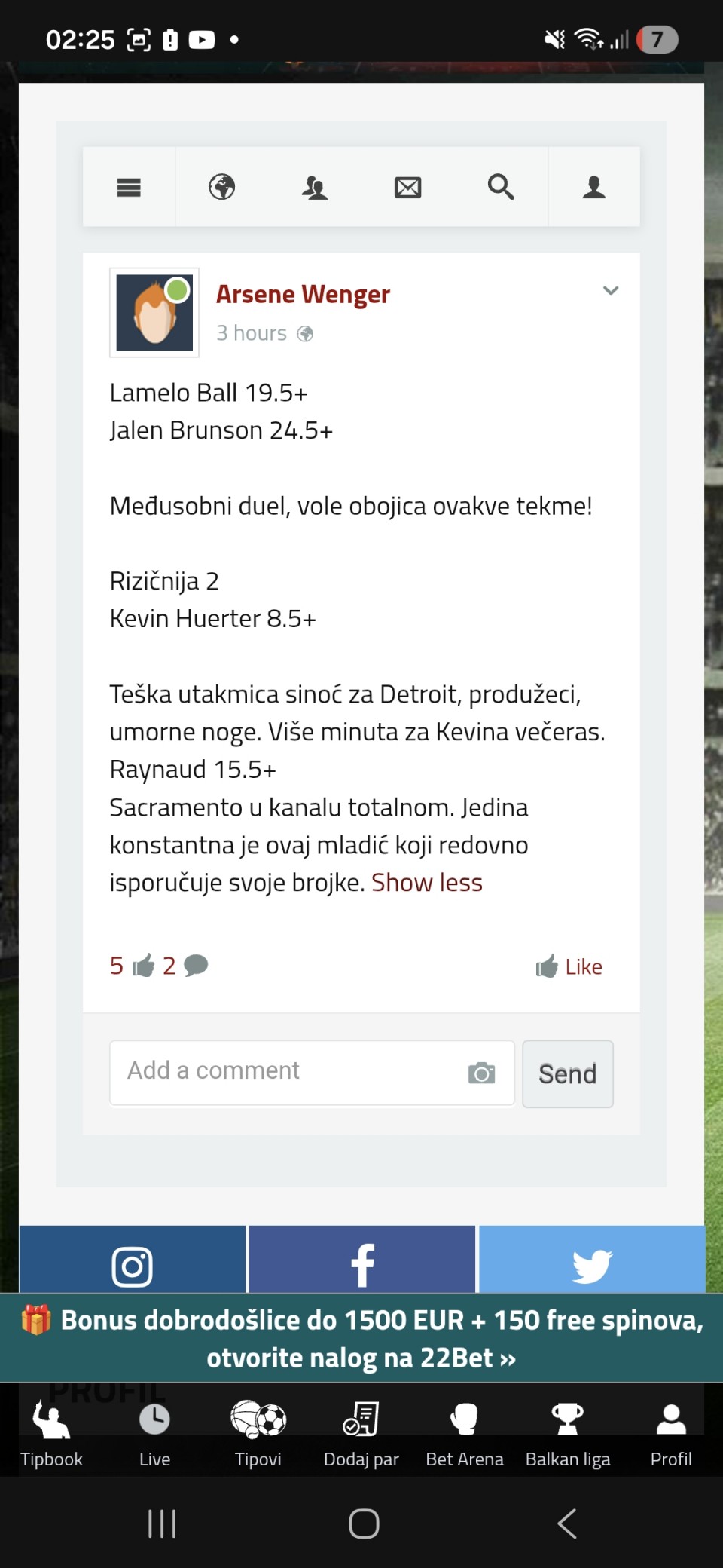 M.Wright 26 poena ❌ (Moja greška i previd da ne igra Avramović čime naš tip dobija mnogo...Poštovane kolege za večeras imamo sledeći rekap tipova: