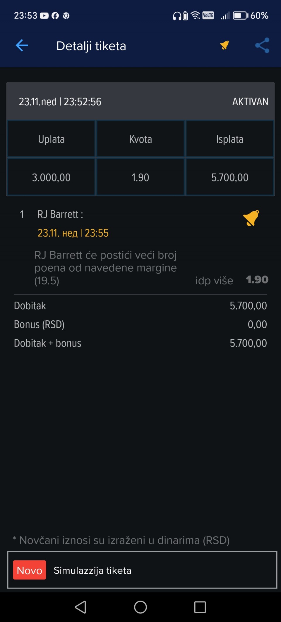 Šteta za tripl, Bolivaru poništen penal pa i gol u prvom poluvremenu, moglo je lako 4+ to da ode, probam za noćas još jednu dok čekam ove druge Bolivijce da krenu