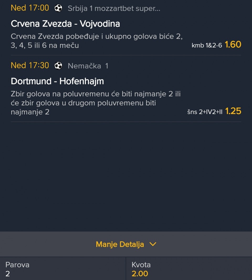Duel koji me je dosta namucio ??? Domacin ponovo Sarajevo, c.zvezda koji tim izvodi 23 ili 46 ti, ovdje moze biti ozbiljna prica , KK Bosna po iznenadzenje mnogih uopste lose ne izgleda u ABA Ligi i cini se da su neki igraci uhvatili ritam ,...Duel koji me je dosta namucio ??? Domacin ponovo Sarajevo, c.zvezda koji tim izvodi 23 ili 46 ti, ovdje moze biti ozbiljna prica , KK Bosna po iznenadzenje mnogih uopste lose ne izgleda u ABA Ligi i cini se da su neki igraci uhvatili ritam , nedavno su porazili Spansku Murciu i Spartak Suboticu u istoj dvorani , extremno je mala kvota na domacina , realno 12 kvota je bila ok, medzutim da li se nesto zna vec ??? Prijedloge pisite u komentare ,