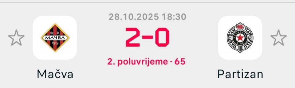Mocni Partizan izgubio 2:0 od Macve..Salu na stranu svaka cast Macvi, meni je GG pao, cestitam svakome ko je igrao domacin gol..